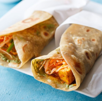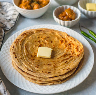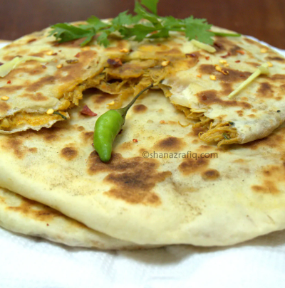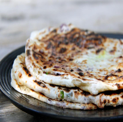 Flatbread stuffed with green chilli, Indian cheese, onions, and spices