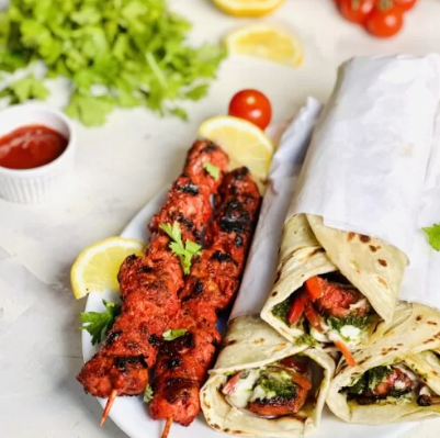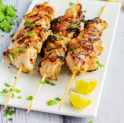 Marinated Chicken in yogurt and spices threaded onto skewers, cooked in clay oven