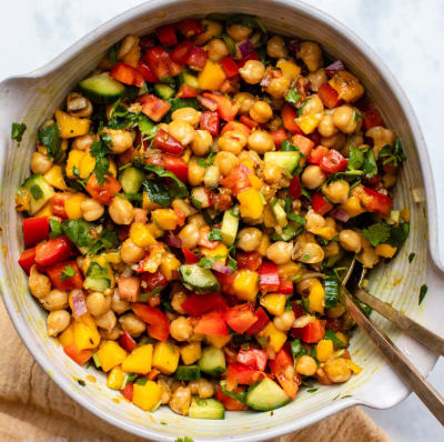 Consists of cucumber, onion, carrots, tomato, and cabbage topped