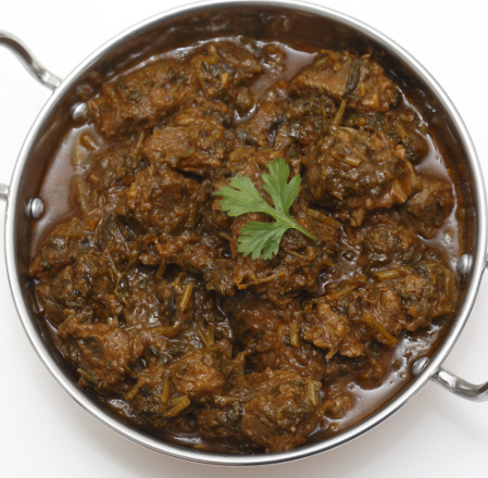 Classic Indian dish where the Goat is cooked with spinach. Nutrient-rich, low fat and low calorie meal.