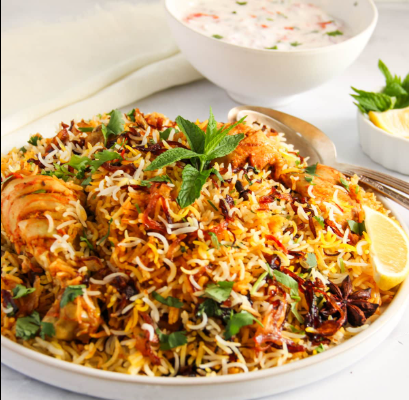 An enticing blend of diverse proteins harmoniously infused with biryani masala, yogurt, mint, cashews, raisins, fried onions, and cilantro, expertly cooked under gentle steam to create a delectable culinary experience.