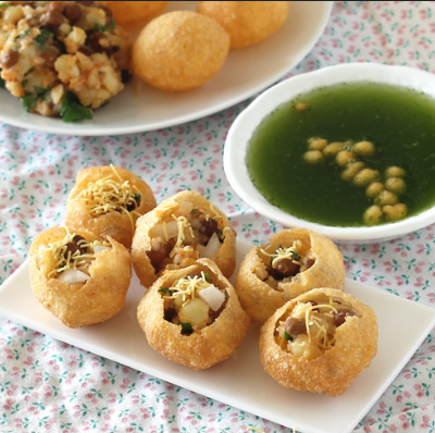 Hollow fried balls filled with potatoes, onion and mint flavoured water