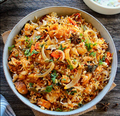 Authentic Indian rice cooked with a special blend of veggies and spices.